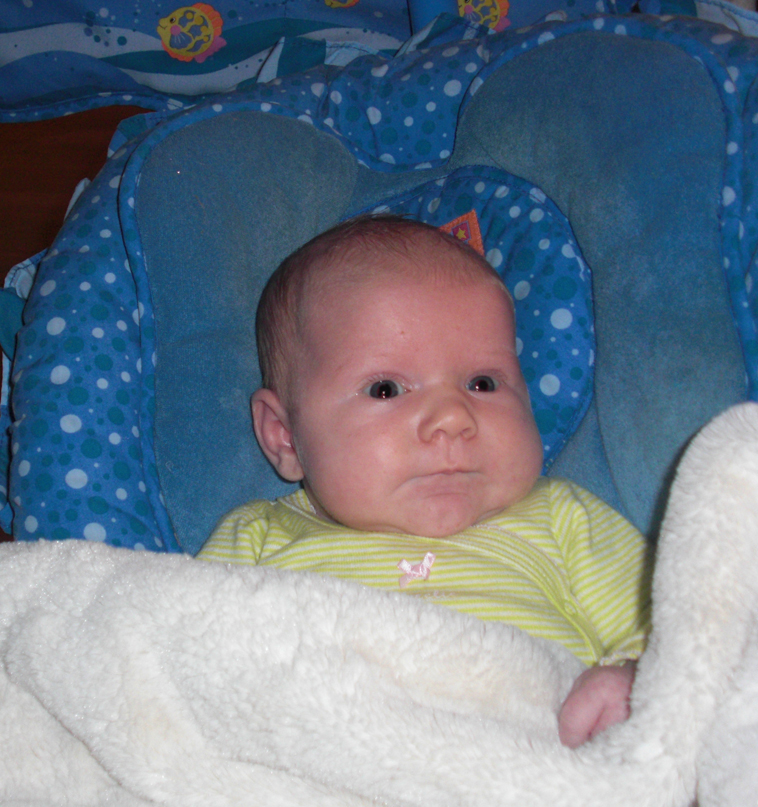 7:31 p.m. I’m full of milk, I’m bundled in a blanket, and Dad’s rocking me to sleep. Does he really think this is going to put me to sleep? Well, I am getting a little drowsy. Actually, very drows….ZZZZZZ.